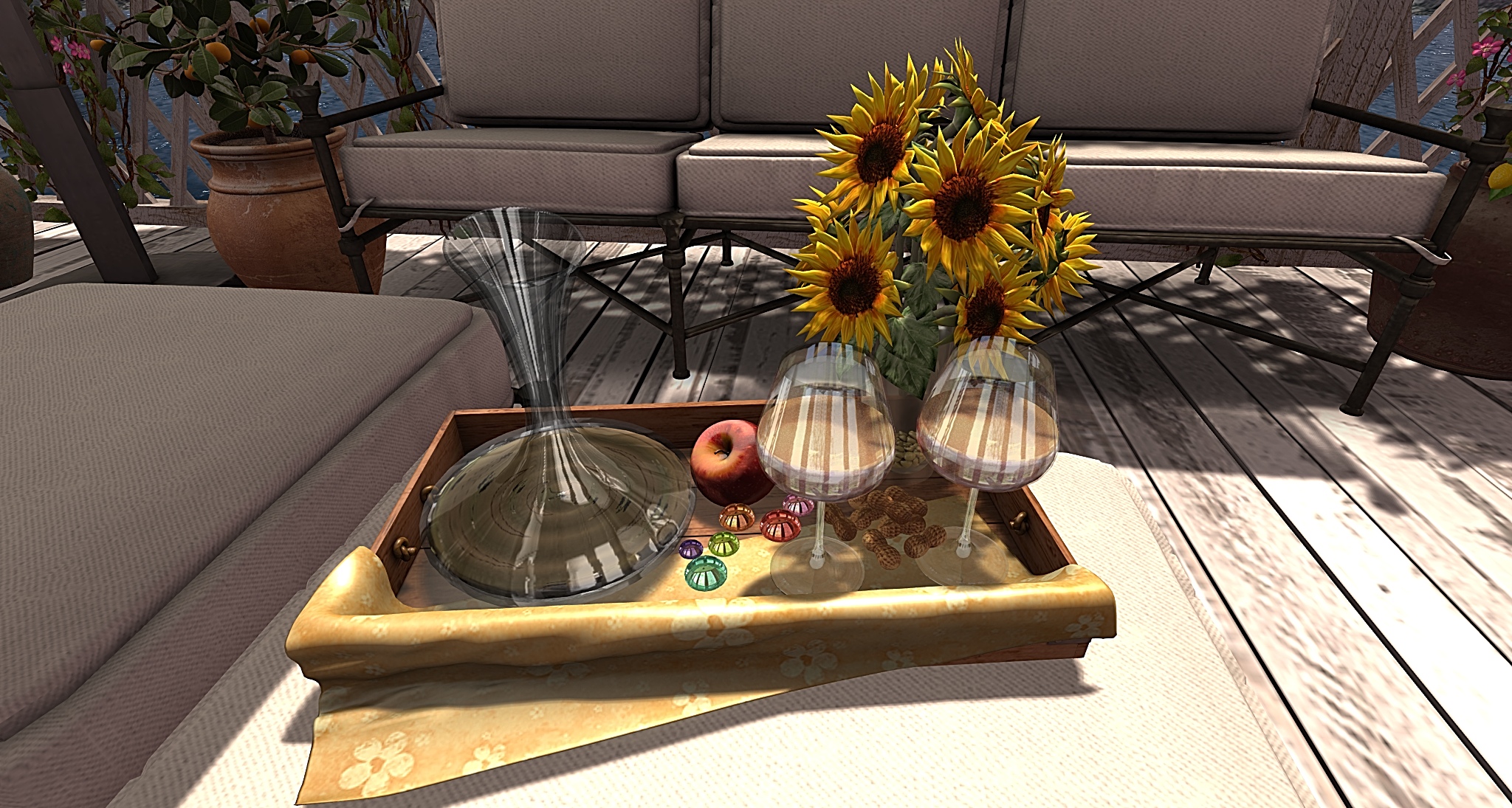 Great Dispenser for Glass of white Wine (right or left Hand) with Bento Animation and pretty Sunflowers in Vase. One single Sunflower (hold) as Gift in Bag 9 Li ~ Copy ~ enjoy ♥